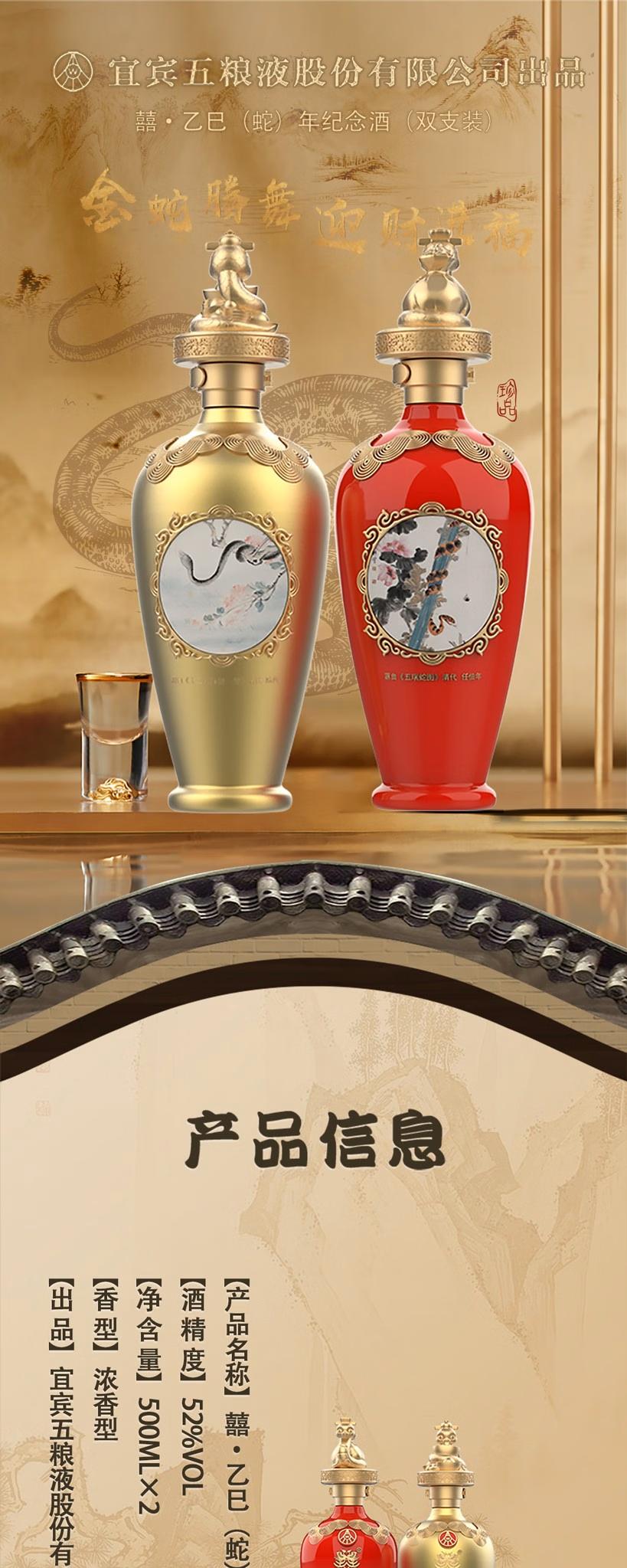 五粮液囍系列 乙巳蛇年 生肖纪念酒 52度浓香型白酒 500ml*2